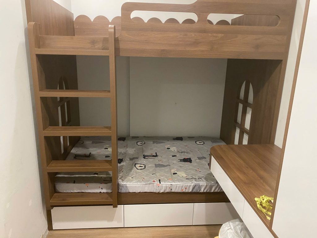 Chúng tôi còn nhận tư vấn thiết kế, sản xuất lắp đặt giường tầng trẻ em theo kích thước yêu cầu của quý khách.